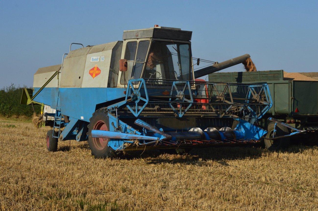 captures the historic Fortschritt E-512 combine harvester and stands out for its high level of detail.