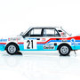 Metallmodell des Rennwagens Škoda 130LR, Nr. 21, Rally Bohemia, P.Sibera/P.Gross, 1988. Das Modell ist in einer PVC-Box und auf einem Sockel mit Markierungen verpackt.