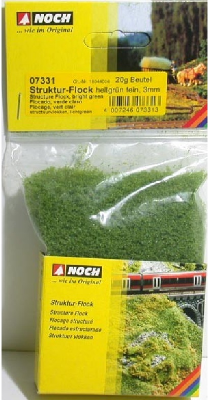 The foam flake is ground to three different grain sizes and colored in four matte and very realistic shades of green. This makes NOCH foam flakes suitable for a wide range of applications such as herd trees or soil cover design and small shrubs. Thanks to the four matte shades, it is possible to reproduce vegetation colors very realistically.