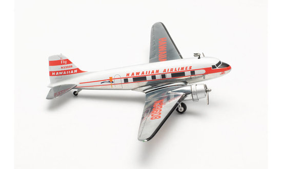 Kvalitný kovový model civilného lietadla Douglas DC-3 “Viewmaster” Hawaiian Airlines. Model je detailne a precízne spracovaný, podľa reálneho stroja. Balenie modelu obsahuje magnetický podvozok a odnímatelný podvozok.