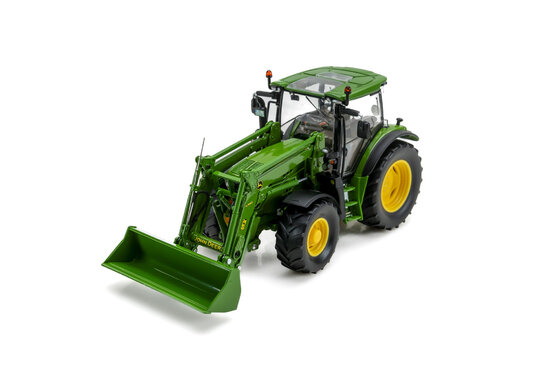 Detailný kovový model John Deere 6125R s predným nakladačom H340, uzavretou kabínou a detailným interiérom , potrubím , káblami a detalnými obtlačkami, otváranie kabíny, otváranie dverí a okien, rozkladacie ovládanie zrkadiel , otváracia kapota motora, predné riadenie, odnímateľná hmotnosť, predný a zadný 3 - bodový záves a otáčacie kolieska s autentickým dezénom pneumatík